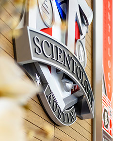 Будущая Идеальная церковь Саентологии в Техасе расположена непосредственно рядом с Техасским университетом. Здание площадью 4800 квадратных метров стоит на главном общественном коридоре Остина, улице, известной как Драг, по которой каждый день проходят 70 000 пешеходов.