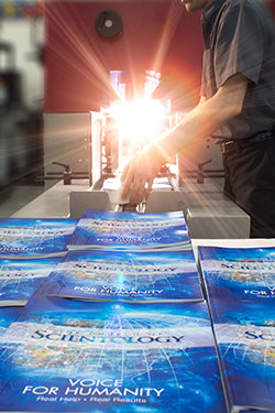 Саентологический Центр распространения и распределения также производит все просветительские материалы для спонсируемых Церковью гуманитарных программ, включая крупнейшую в мире неправительственную инициативу по правам человека и крупнейшую в мире негосударственную антинаркотическую программу. Церковь бесплатно предоставляет эти просветительские материалы школам, общественным группам, правительствам, правоохранительным органам и учреждениям в частном секторе. Ввиду того, что все материалы теперь производятся в нашей собственной типографии, за ту же цену, за которую раньше можно было произвести 3,5 миллиона антинаркотических брошюр, теперь Церковь может производить 35 миллионов и достигать в 10 раз больше молодых людей из групп риска.