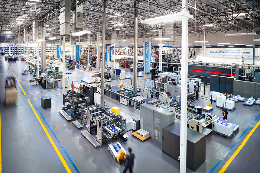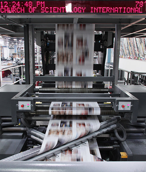 Сердце типографии — это созданная специально для нашей типографии рулонная печатная машина весом в 121 тонну. Среди прочих материалов она печатает журналы Церкви (на 15 языках), которые расходятся миллионными тиражами. Эта машина удовлетворяет самые разнообразные потребности благодаря тому, что может автоматически переключаться с печати одного языка на печать другого. Она печатает со скоростью 55 000 страниц в час. В Центре также есть листовые печатные машины и машины для цифровой печати, чтобы производить для организаций Церкви сотни тысяч информационных частиц, которые будут использоваться, чтобы знакомить общественность с саентологической религией и её религиозными услугами.