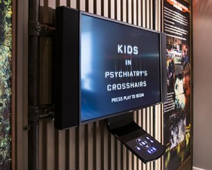 Однако выставка включает в себя не только информацию на стендах. В неё входит полнометражный документальный фильм, представляющий полную историю психиатрии и раскрывающий её псевдонаучное происхождение, а также шокирующие нарушения прав человека, которые привели к учреждению ГКПЧ.
