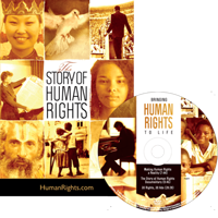 DVD «Делая права человека реальностью», знакомящий c нашей всемирной программой просвещения о правах человека и инструментами повышающими их осознание, которые вы можете использовать: удостоенный наград 9-минутный просветительский фильм «История прав человека», 30 роликов социальной рекламы, иллюстрирующие каждую статью Всеобщей декларации прав человека и музыкальное видео против дискриминации «Объединяйтесь».