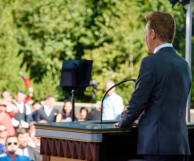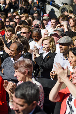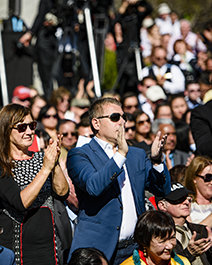 В таком уникальном месте в воскресенье и собрались более чем 2500 саентологов и их гостей, чтобы отпраздновать это важное достижение. К ним присоединились почётные гости — члены городского и национального правительства.