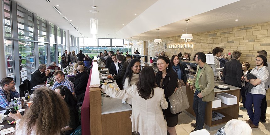Из новой столовой, построенной рядом с замком, открывается живописный вид на окрестности графства Сассекс. Столовая прекрасно подходит не только для обедов или перерывов между сессиями и занятиями, но также может служить местом встреч для посещающих многочисленные мероприятия, запланированные в Сент-Хилле.