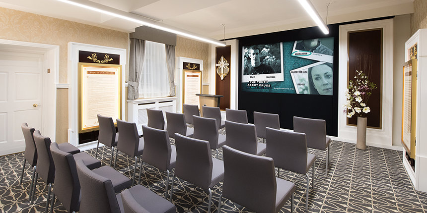 Офис по общенациональным вопросам оборудован информационным центром, полностью укомплектованным интерактивными обзорами программ и аудиовизуальными стендами, где посетители могут узнать о том, что делает Саентология для улучшения общества, о её гуманитарных инициативах и о многом другом. Центр, оборудованный по последнему слову техники, предоставляет яркие и подробные иллюстрации основных принципов религии и её целей: мир, здоровье и счастье для всех народов. Эти материалы очень подробно описывают обширную работу Церкви по продвижению религиозной терпимости и понимания, по пробуждению духовного осознания в людях и по помощи в развитии межрелигиозного сотрудничества, которое создаёт общественные группы и укрепляет уважение ко всем людям. В информационном центре для публики можно найти информацию о работе Церкви по созданию мира без наркотиков, о деятельности по созданию возможностей для обучения и об инициативах, направленных на обеспечение более мирного существования.