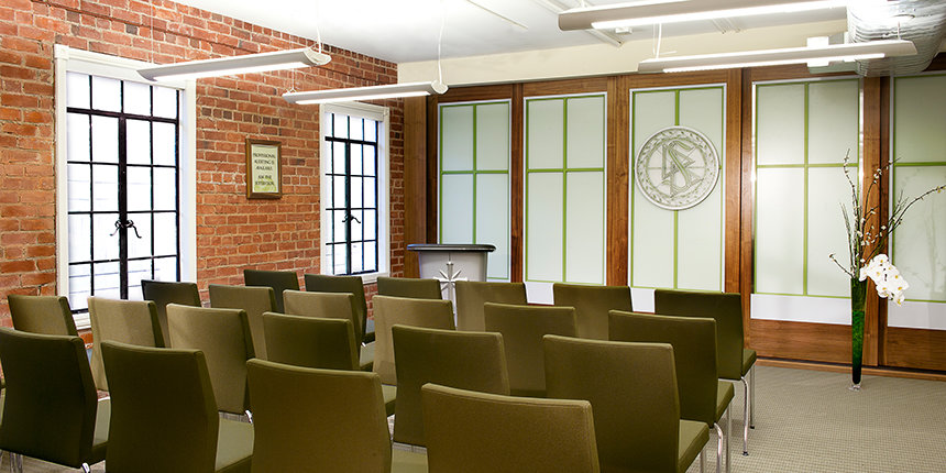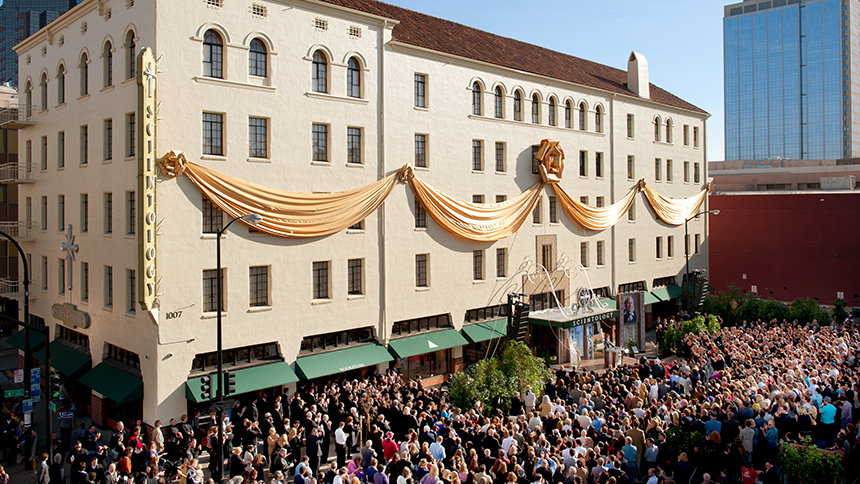 Новый дом Церкви — одно из самых известных архитектурных сооружений города, расположенное всего в нескольких кварталах от Капитолия штата. Открывшееся в 1930 году под вывеской отеля «Рамона» здание было разработано первым архитектором штата. Оно представляет собой отлично сохранившийся образец стиля испанского колониального возрождения. Церковь заботливо сохранила структуру здания и восстановила блеск первоначальных элементов конструкции: фактурную отделку, орнамент из лакированных кирпичей и терракотовых плиток, декоративные стальные решётки и даже исторический герб в виде меча. Всё восстановление было спланировано и выполнено в условиях максимального внимания к окружающей среде в соответствии с золотым стандартом Совета по экологически чистым зданиям США за «выдающиеся достижения в потреблении энергии и сохранении окружающей среды».