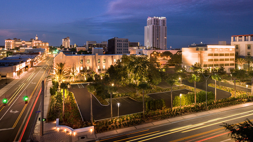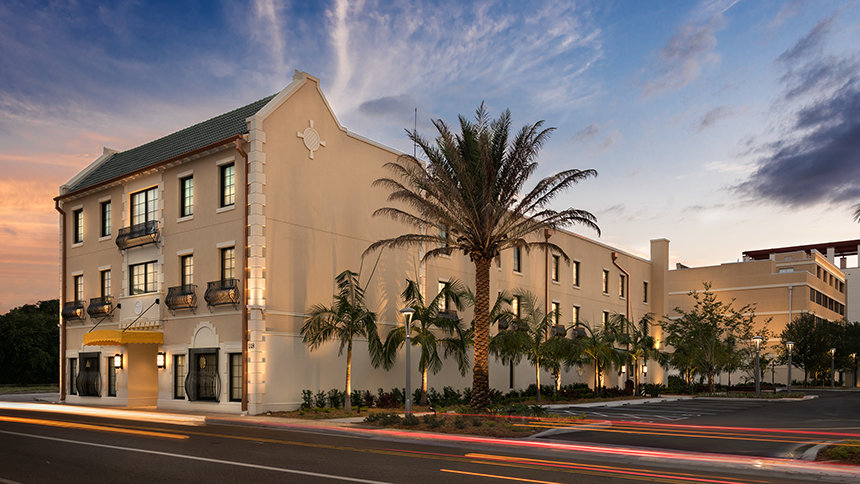 Построенное в 1927 году здание площадью 1633 квадратных метра изначально называлось «Вест Коуст Хотел» и считалось одним из лучших бутик-отелей во Флориде. Отель был местом проведения разнообразных мероприятий, таких как конкурс «Мисс Флорида», а также в нём останавливались, например, игроки бейсбольной команды «Филадельфия Филлиз» во время весенних тренировок. Церковь приобрела это здание в 1981 году.