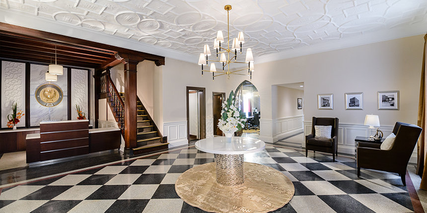 Исторические элементы здания «Вест Коуст Билдинг» были тщательно восстановлены: от характерного фасада и декоративного литья цветочных корзин под окнами и до новых 12-панельных традиционных окон; от венецианской напольной мозаики и потолочных балок красного дерева в элегантной приёмной до зелёной черепичной крыши и наружных навесов.