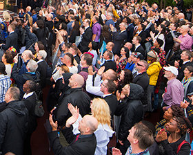 Недельное празднование завершилось самой первой воскресной службой церкви. Служба началась с радостного а капелла пения хора Соуэто. Вдохновляющая служба, включавшая в себя церемонию посвящения в духовный сан, стала свидетельством воплощения мечты Л. Рона Хаббарда для этого континента, объединяя королевские семьи Африки, общественных лидеров, местных жителей провинции Гаутенг и сообщество саентологов. Это было подходящее завершение исторической недели, наполненной духом надежды и веры в лучшее будущее.