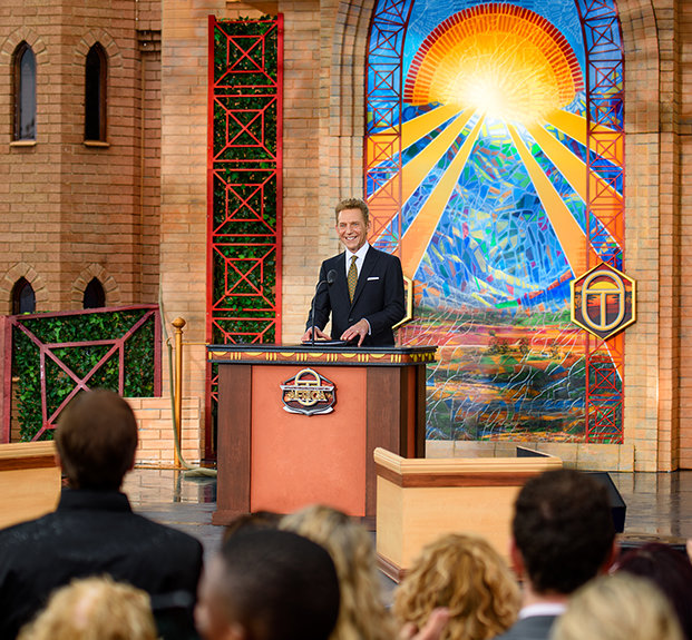 «Сегодня вы являетесь свидетелями истории. Первая новая продвинутая организация в наш Золотой век. Это страна, где появились первые церкви Саентологии нового тысячелетия, и это отправная точка, откуда мы принесём нашу помощь повсюду. Если что-то называют „священной землёй“, то это место несомненно является таковым. И это место тем более священно, поскольку здесь, как вам скажут, зародилось человечество и „пуповина“ всё ещё лежит в земле под нашими ногами. Но в любом случае, вы стоите на перекрёстке трёх миллионов ушедших лет и грядущего бесконечного будущего».