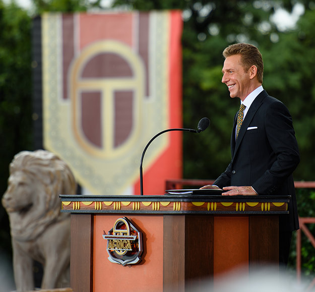 «Когда вы читаете книги Л. Рона Хаббарда, то осознаёте, что мы сможем изменить мир, если станем посланниками его мысли», – сказал он. «Я хочу сказать, что Дианетика и Саентология воплощают собой дух убунту (гуманизма): „Я есть, поскольку мы есть“. Это дух, в котором так отчаянно нуждается наша земля. Итак, сегодня пусть запалят пушки и зазвучит горн. Пусть львы зарычат, слоны затрубят и леопарды побегут, потому что Африка теперь называет этот невероятный замок своим домом. И так пробуждается наша любимая Африка!»