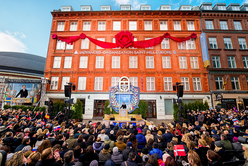 Торжественное открытие последовало за монументальным выпуском Фазы II Золотого века технологии, благодаря которому всё больше и больше саентологов с невероятной скоростью поднимаются по Мосту к состоянию Клир. Поэтому дом AOSH Европы был полностью переделан в идеальную Продвинутую организацию, чтобы разместить большое количество европейцев, которые сейчас готовы пересечь порог царства ОТ.
