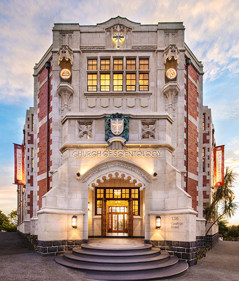 Окленд празднует торжественное открытие новой национальной церкви Саентологии Новой Зеландии — культурного памятника, возвышающегося над городом.