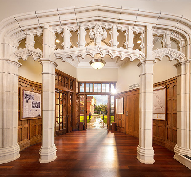 Начиная с фасада из красного кирпича и белого камня Оамару и заканчивая восстановлением изящной дубовой отделки в вестибюле и библиотеке, сохранением обшивки из древесины риму и полов из дерева ярра, она отметила, что проделанная работа превратила здание в произведение искусства.