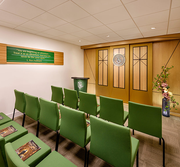 Новые саентологическая церковь и общественный центр знакомят всех посетителей с Дианетикой и Саентологией, начиная с информационного центра для публики. На его экранах представлены более 500 видео, которые отражают верования и практики саентологической религии, а также жизнь и наследие Основателя Саентологии Л. Рона Хаббарда.