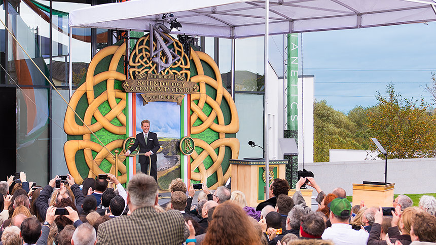 «Я обращаюсь к Ирландии вечной, Ирландии необыкновенной: вы сохраняете вашу литературу живой уже 500 лет. Вы построили Америку, и, возможно, даже открыли её. Вы научили человечество идеям равенства и тому, как жить с достоинством в мире, его лишённом. И вы научили нас, что нет ничего ценнее красоты, за которую вы готовы сражаться. Вот почему для нас честь открыть вместе с вами двери новой Саентологической церкви и общественного центра Дублина».