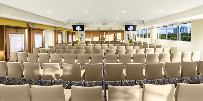 В часовне новой церкви Саентологии Майами проходят собрания прихожан – воскресные службы, церемонии венчания и церемонии наречения. И это идеальное место для проведения дней открытых дверей, общественных собраний, официальных обедов и банкетов для членов любой веры.