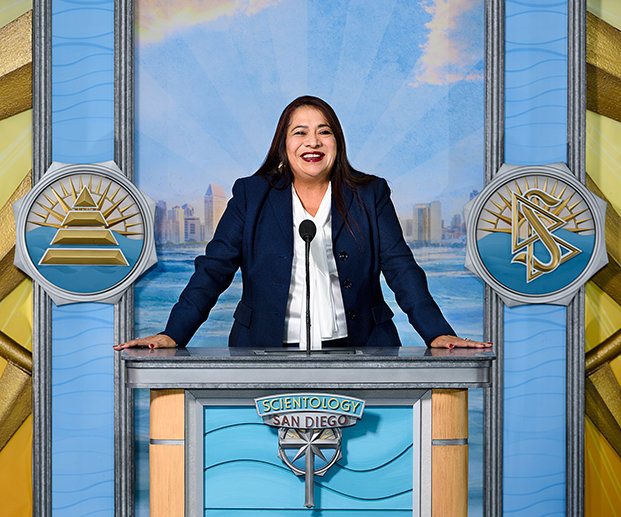 В новой церкви Сан-Диего знакомство с Дианетикой и Саентологией начинается с информационного центра для публики. На его дисплеях представлены более 500 фильмов, которые отражают верования и практики саентологической религии, а также жизнь и наследие Основателя Саентологии Л. Рона Хаббарда.