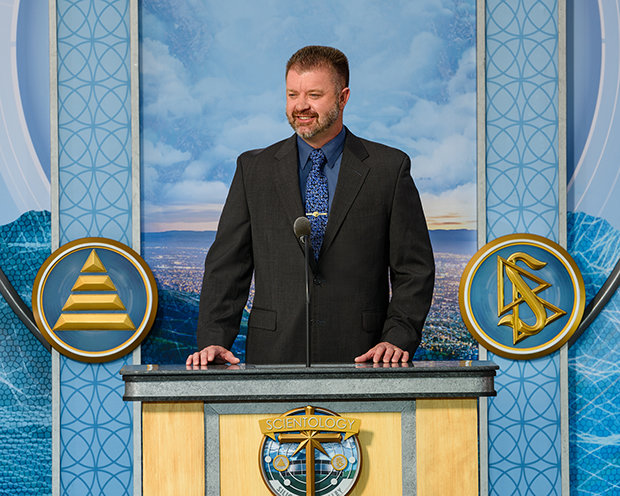 Господин Дэвид Мицкевич, Председатель правления Центра религиозной технологии, ведёт торжественную церемонию открытия церкви в воскресенье 18 февраля 2018 г. в сердце Кремниевой долины.
