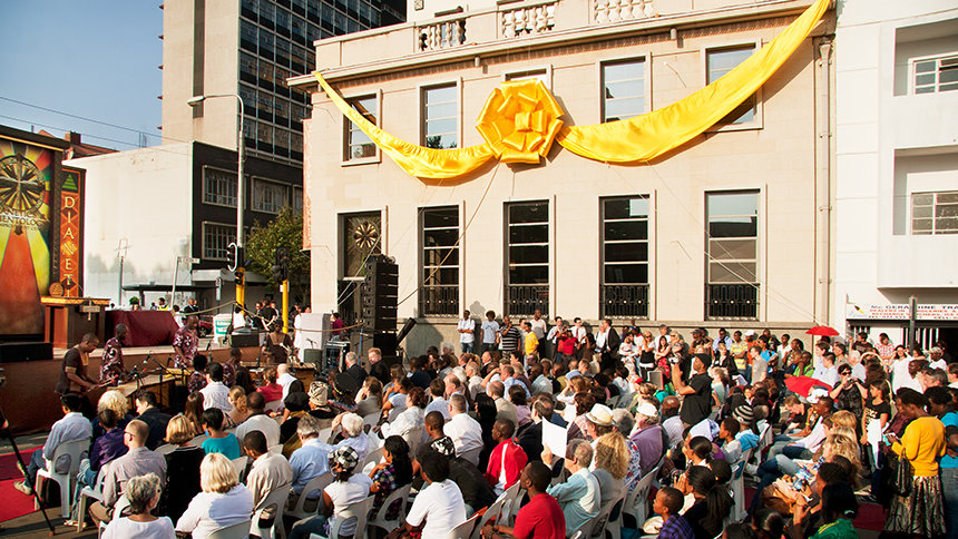 Центр находится неподалеку от университета Уитсватерсранд (УИТС) в городском районе Браамфонтейн и таким образом обслуживает многонациональное сообщество, общая цель которого выражена в девизе района: «место, где люди достигают величия». Ведущий этого мероприятия директор центра Эдмунд Длейдлу торжественно пообещал работать с местным сообществом, чтобы воплотить этот девиз в жизнь.