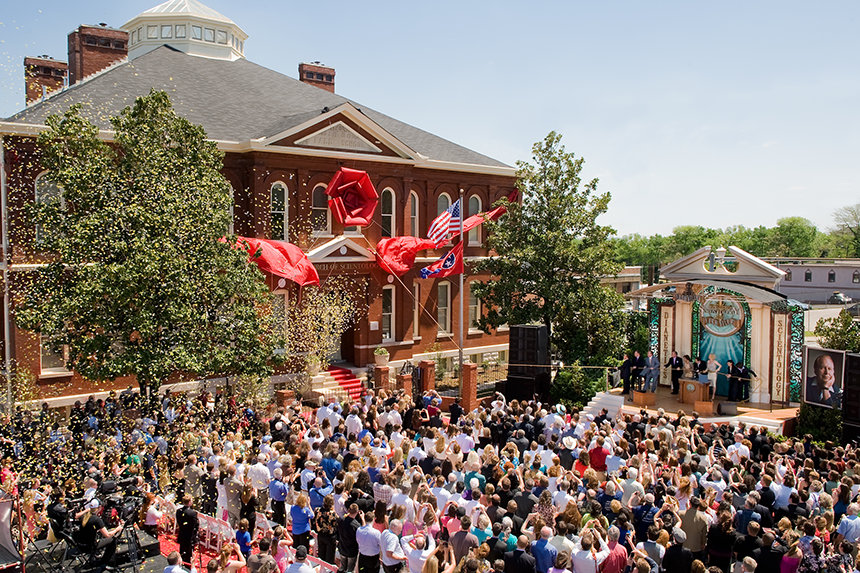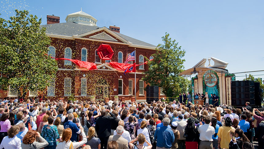 С этими словами была перерезана ленточка, и новая церковь в Городе музыки США была открыта для всех, чтобы написать эту новую песню.