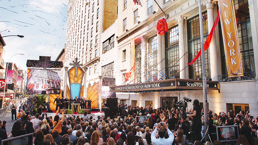 Саентологическая церковь Нью-Йорка, расположенная рядом с Таймс-сквер, была подарком от Международной ассоциации саентологов жителям Нью-Йорка в под- тверждение их смелости и силы духа перед лицом катастрофы 11 сентября 2001 года.