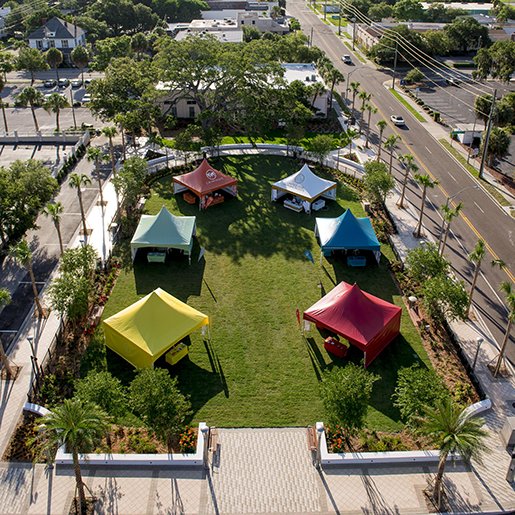 Торжественное открытие информационного центра сопровождалось одновременным открытием по всему кварталу вдоль Форт-Харрисон авеню шести помещений, каждое из которых представляет одно глобальное гуманитарное начинание и предназначается для улучшения Клируотера и области залива Тампы.