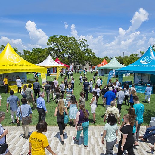 - Новый дом для добровольных священников Церкви, которые участвуют в глобальном движении, действующем в 120 странах. Это самая большая в мире независимая сила по оказанию помощи в чрезвычайных ситуациях. В одной лишь области залива Тампы саентологи ежегодно предоставляют более 200 000 часов добровольческой помощи, неся по жизни девиз добровольных священников, который гласит, что какой бы ни была проблема, «С этим можно что-то сделать».
