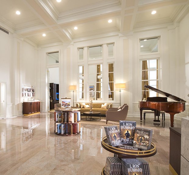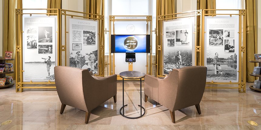 Спроектированный как открытая и доступная точка для встреч, информационный центр даёт полный биографический обзор, освещающий невероятную жизнь и наследие Основателя Саентологии Л. Рона Хаббарда — от его детства до карьеры писателя перед появлением Дианетики и Саентологии, а также его революционных работ при создании и описании самой религии.