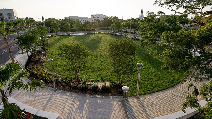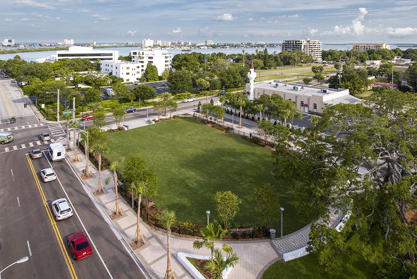 В субботу также праздновалось торжественное открытие дворика «Оцеола» — зелёного оазиса на углу Форт-Харрисон авеню и Дрю-стрит, который является украшением города. Во время праздников в нём будут устанавливаться красочные павильоны, чтобы можно было ознакомиться с каждой из поддерживаемых Церковью гуманитарных программ. В парке также будет размещаться «Зимняя страна чудес», что является популярной семейной традицией, которая поддерживается саентологами и предоставляется ими местным жителям вот уже 25 лет.
