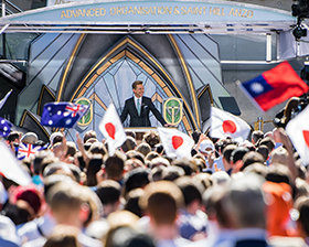 А в сентябре продолжавшееся целый год расширение Церкви было увенчано открытием второй организации: нового духовного центра для Тихоокеанского региона в Сиднее, Австралия. Великолепная новая продвинутая организация площадью почти 13,5 тысяч квадратных метров, расположенная посреди 364 гектаров леса всего в десяти минутах от центра Сиднея, является самым большим в мире духовным центром Церкви за пределами Соединённых Штатов. Участникам были представлены основные моменты церемонии перерезания ленточки на обоих новых организациях, включая трогательные речи местных и национальных почётных гостей, посетивших эти события.