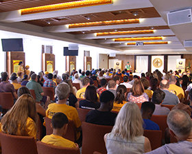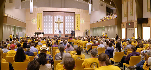 Войдя в ворота усадьбы, пройдя вход и двигаясь вдоль длинной округлой подъездной дороги, зайдя в павильон и большой зал до сцены, построенной под огромным шатром, члены Международной ассоциации саентологов из более чем 65 стран, заполняя воздух смесью языков, пришли туда с целью восславить гуманность – свою и всего человечества.