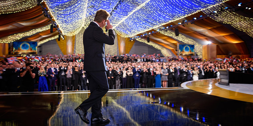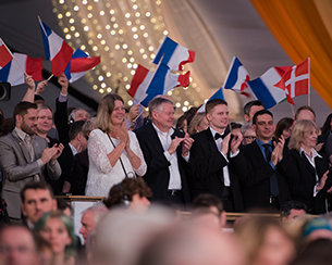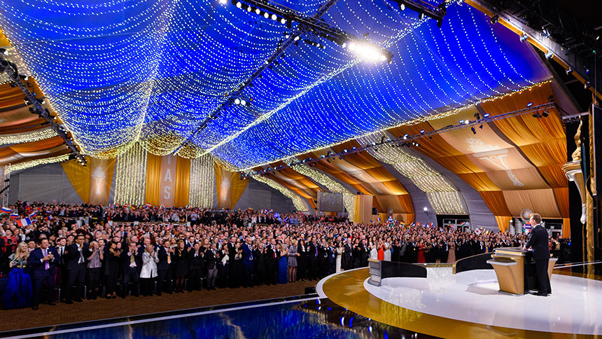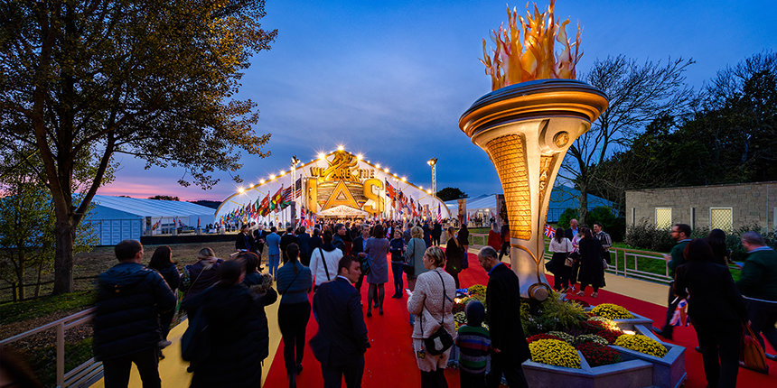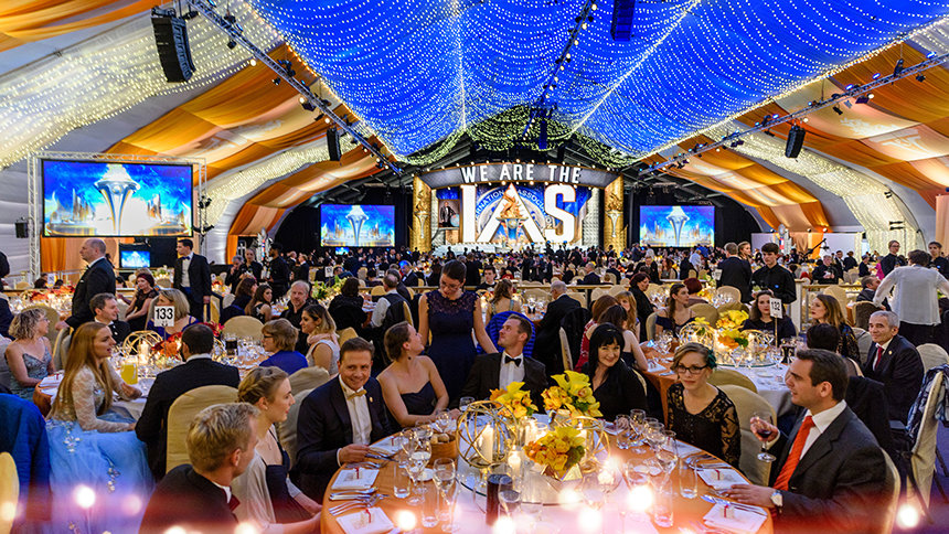 Начавшееся в пятница празднование продолжилось в субботу вечером, поскольку большой шатёр преобразовался для ежегодного бала Патронов МАС. Этот зрелищный официальный ужин и гала‑концерт провели в знак признания членов МАС, поддерживающих гуманитарные инициативы и труд, которым были посвящены эти выходные.