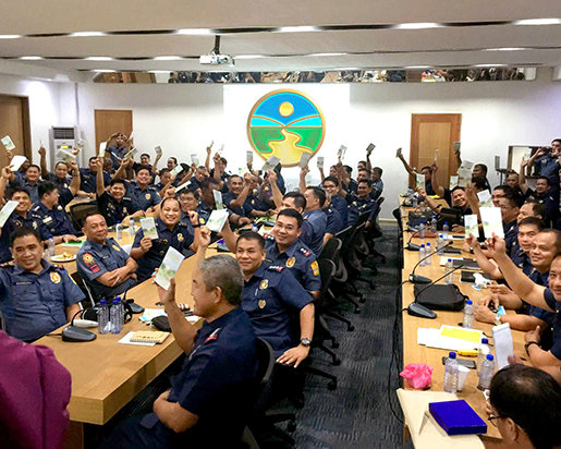 - Посланники «Дороги к счастью» вошли в неизведанные территории на Филиппинах, вызвав широкое принятие кампании, чтобы обучить около 29 000 полицейских универсальным нравственным наставлениям из этой брошюры.