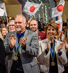 Господин Мицкевич продолжил вечер, в течение которого вручил несколько медалей Свободы МАС, чествуя саентологов за их выдающуюся гуманитарную преданность. Впервые в истории каждый обладатель медали Свободы был Новым ОТ VIII.