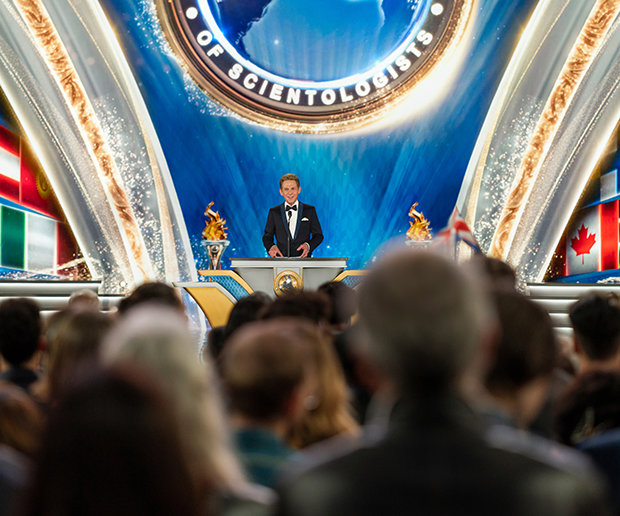 Собравшиеся со всей Великобритании, Европы, со всех США и даже из таких далёких мест, как Африка и Азия, гости в предвкушении направились в изысканный главный павильон. Как только сцена озарилась огнями, ознаменовав начало празднования, господин Дэвид Мицкевич, Председатель правления Центра религиозной технологии, вышел под оглушительные овации, которые были одними из самых долгих в истории.