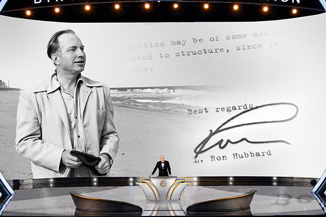 «Добро пожаловать на вечер, когда мы чествуем нашего Основателя. Это не значит, что вы никогда не были с ним знакомы, но так как это вечер для торжественных формальностей, давайте начнём с некоторых основ. В прошлом году новые церкви Саентологии появились в каждой географической зоне, новые помещения для семимильных шагов на целых континентах, не говоря уже о совершенно новом 2019 годе, который никогда не будет забыт, даже при том, что он только начался. Короче говоря, наше расширение ошеломляет, и, конечно же, всё это начинается с Источника – Л. Рона Хаббарда».