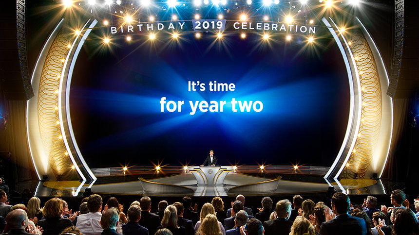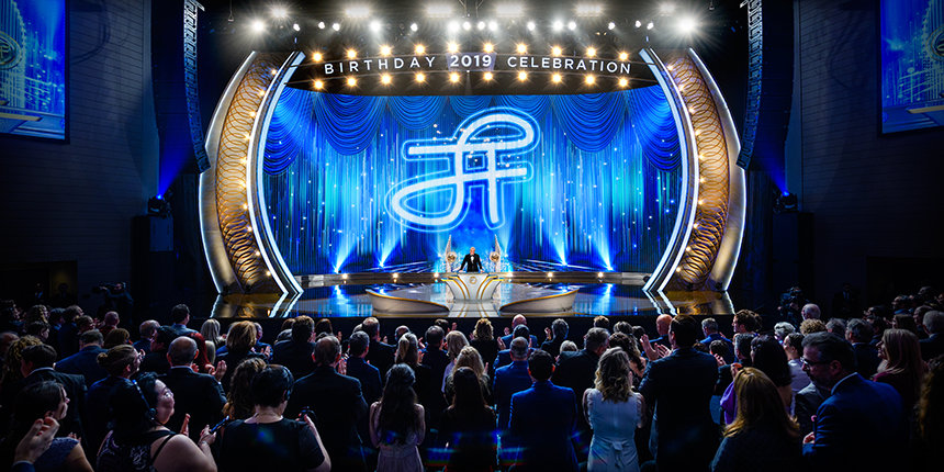 Вечер быстро перенёсся в 2019 год и к церемонии вручения наград, подчеркнувших дух этого вечера, а именно – праздник расширения. Почти 40 лет назад ЛРХ спросили, что он хотел бы получить на день рождения. Он ответил, что подарок – это процветание саентологических организаций и миссий во имя духовной свободы. За последующие годы церкви Саентологии по всему миру сделали из этого игру, участвуя в одной из четырёх лиг в гонке до самого финиша. В этом году каждый чемпион в круге победителей достиг рекордных показателей. Победителями стали: миссия из города Ульм, Германия; церковь Саентологии Штутгарта, Германия; Продвинутая организация и сент-хилл Великобритании и Континентальный офис связи Европы.