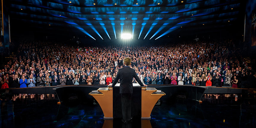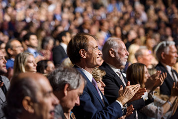 Первым делом г‑н Мицкевич представил целый каскад признаний, адресованных Л. Рону Хаббарду, охватывающих культуры, континенты и цивилизации – по одному на каждый из последних 365 дней. Каждая благодарность, каждое выражение признательности и многократные аплодисменты – всё это объявляло одну новость: наследие LRH бесконечно.