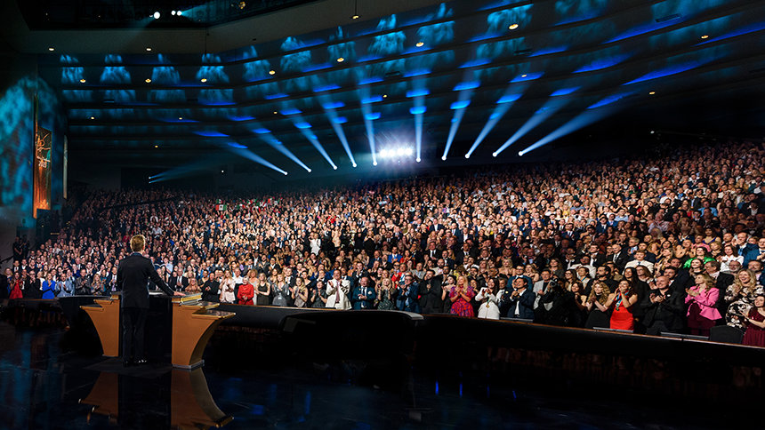 С воодушевляющим темпом вечер подошёл к одной из своих самых ожидаемых глав: объявлению победителей ежегодной Игры ко Дню рождения LRH – международной гонки, цель которой – финишировать первым в одной из четырёх лиг. На шести континентах и в сотнях городах Миссии Scientology, Организации, Продвинутые Организации и Континентальные Офисы Связи продвигаются вперёд с неослабевающим импульсом. Гонка этого года, определяемая не просто скоростью, а масштабом расширения, стала одной из самых состязательных в истории.