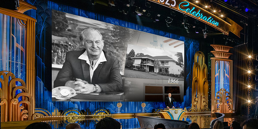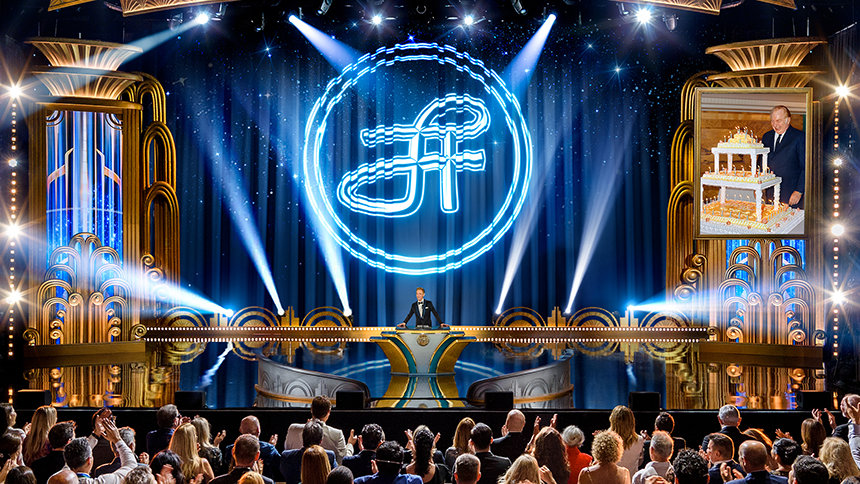 «Всё же есть ещё один пункт в программе сегодняшнего вечера. Настал момент шагнуть в зазеркалье и подумать о том, что готовит нам день грядущий», – сказал он. И для тысяч собравшихся последовало неожиданное, незабываемое и неоспоримое откровение: захватывающий взгляд на будущий Зал Л. Рона Хаббарда – шедевр, которому суждено венчать территорию Флага.