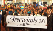 В обращении к саентологам на борту корабля Дэвид Мицкевич сказал: «Мы отмечаем серебряную годовщину первого плавания „Фривиндза“ на заре новой эпохи, которая превзойдёт все предыдущие. Всего шесть месяцев назад мы выпустили Фазу II Золотого века технологии, и сегодня небывало большое количество саентологов двигаются вверх по Мосту к полной свободе. Итак, мы собираемся именно на борту „Фривиндза“, потому что этот корабль является конечным местом назначения для каждого саентолога. В свете этого корабль ещё больше усиливает свою гуманитарную миссию — создавать мир, где каждый может подняться к высотам, которые он никогда не мог представить себе раньше».
