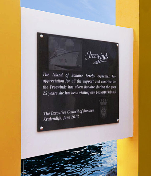 - Монумент в бухте острова Бонейр, представленный губернатором в знак благодарности кораблю за поддержку, оказываемую им в течение 25 лет