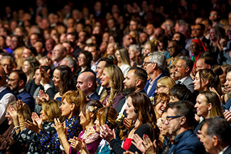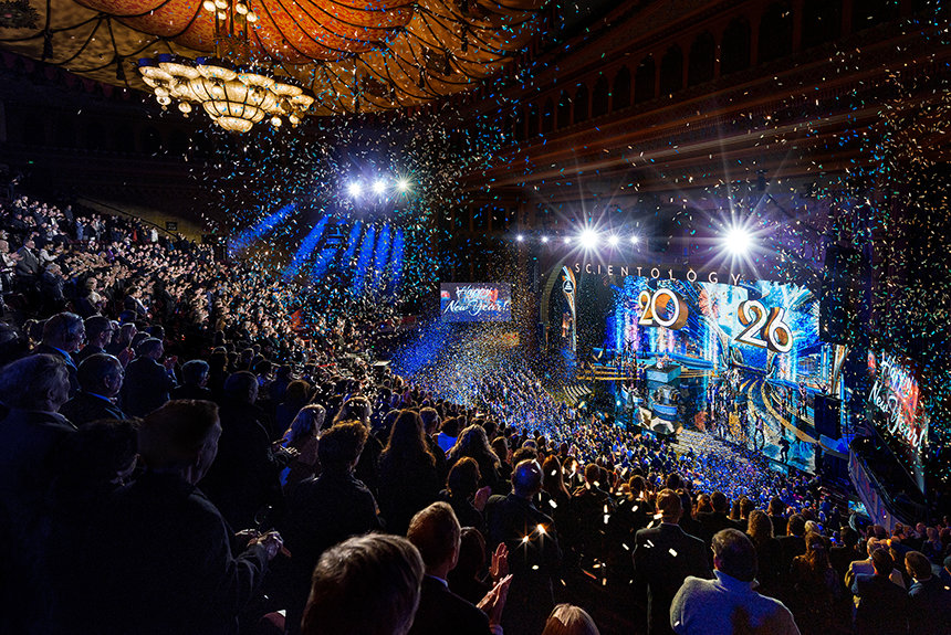 Более 6 500 гостей превращают зал в эпический праздник, когда Празднование Нового года начинается с безошибочно узнаваемого импульса Scientology.