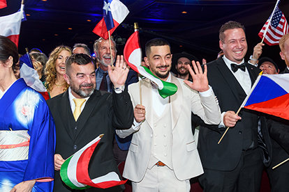 Вечер открывается зажигательным концертом с участием впечатляющего ансамбля международных исполнителей и отмеченных наградами артистов.