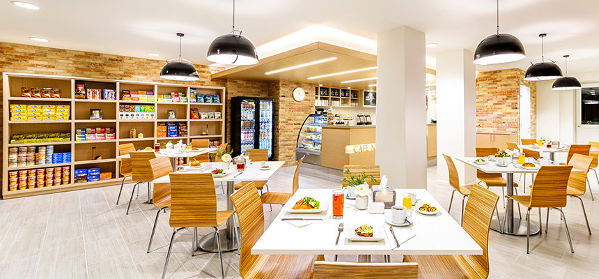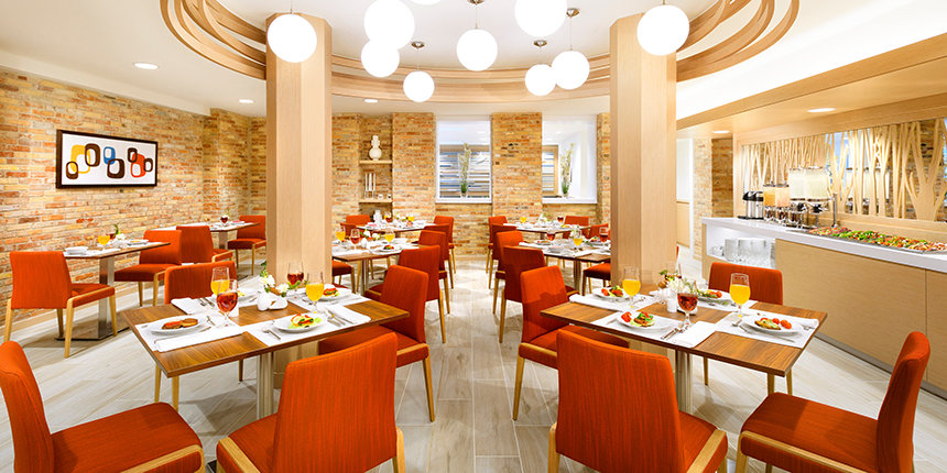 В этом религиозном пристанище в общей сложности 70 прекрасно обставленных номеров, а также две столовые, каждая из которых предлагает широкий выбор блюд и наименований, чтобы удовлетворить прихожан из более чем 30 стран. Кафе «Натюр» в течение всего дня предлагает аппетитные закуски для тех, кто получает консультации или религиозное обучение по Саентологии, в то время как ресторан «Магнолия» предоставляет как «шведский стол», так и индивидуальное обслуживание за столиком.
